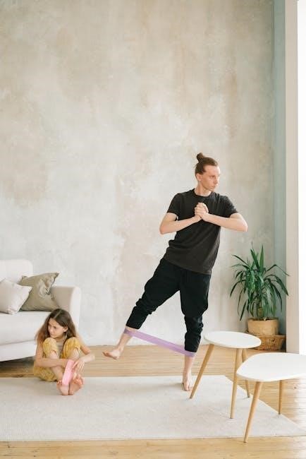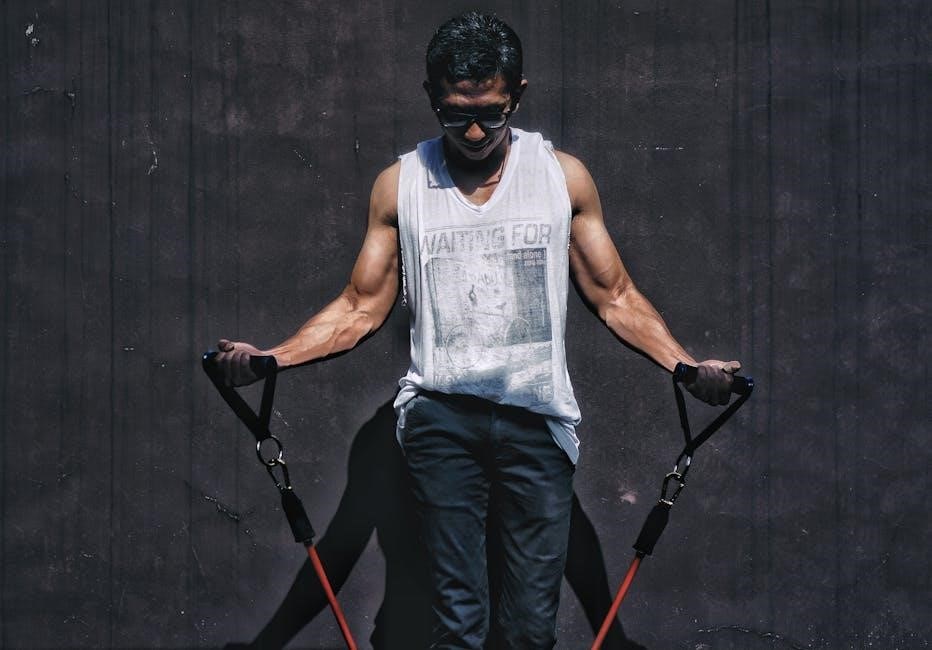 Heavier bands (black, silver, gold) deliver significant resistance, targeting advanced users focused on muscle hypertrophy and power. Choosing the correct resistance is crucial; start with a lighter band and increase as you gain strength. A printable chart often indicates the appropriate level for each exercise, ensuring safe and effective workouts.