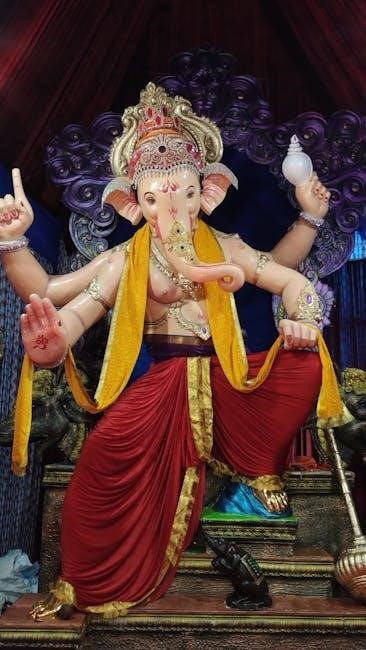 These digital resources facilitate regular chanting and study, promoting spiritual growth and devotion. The widespread availability of the Ganesh Ashtakam PDF underscores its importance in Hindu traditions.