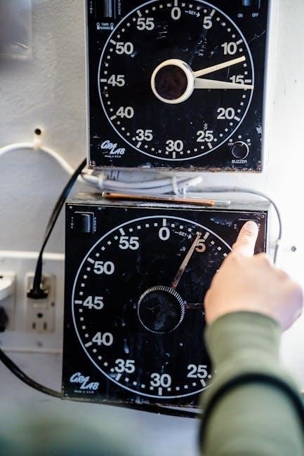 Accurate time and date settings are crucial for proper timer switch operation. Typically‚ you’ll enter programming mode by pressing a “Set” or “Program” button. Use the arrow buttons to navigate to the hour setting‚ then press “Set” again to confirm. Repeat this process for minutes‚ month‚ day‚ and year.