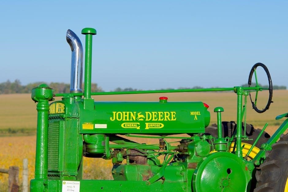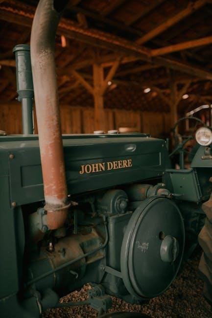 John Deere Gator owners manuals detail regular inspection checklists, fluid level checks, and filter replacement procedures for peak performance and longevity.