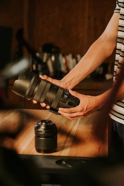 Lens errors often mean the lens isn’t properly attached; re-mount it securely. Memory card errors can sometimes be resolved by cleaning the card contacts. If the flash isn’t firing, verify flash settings and battery levels. Refer to the full manual for detailed troubleshooting steps and error code explanations.